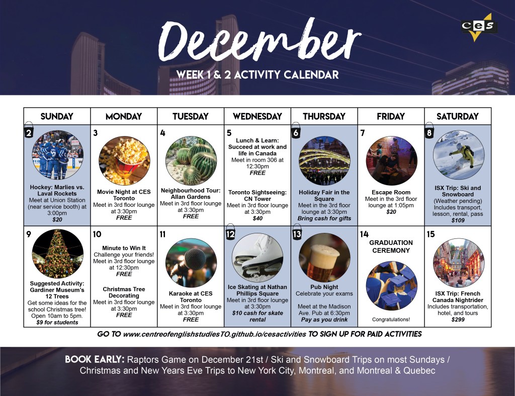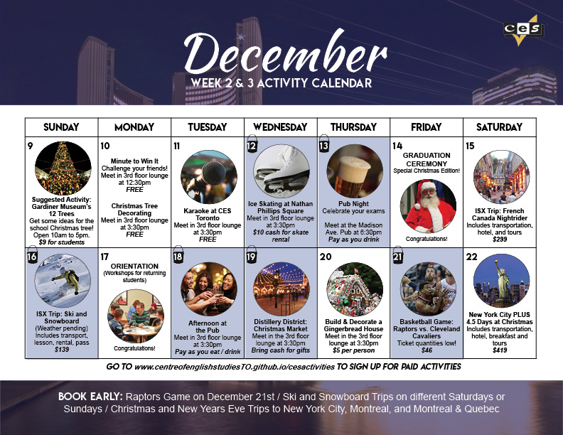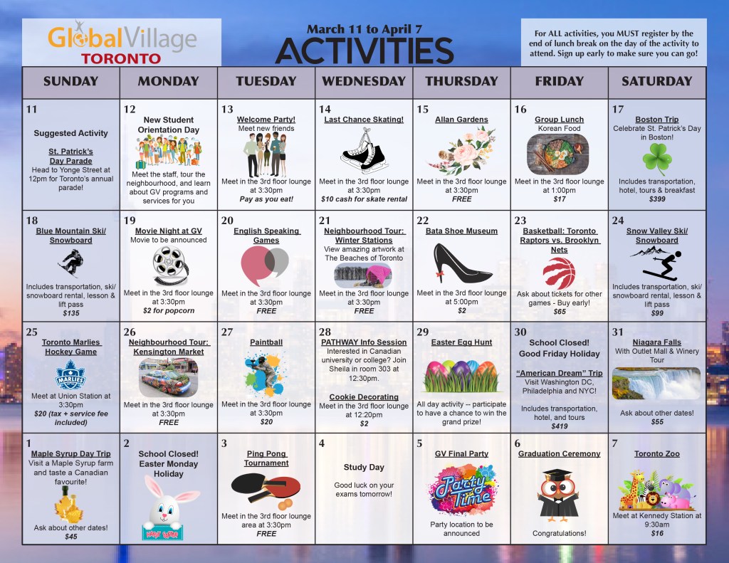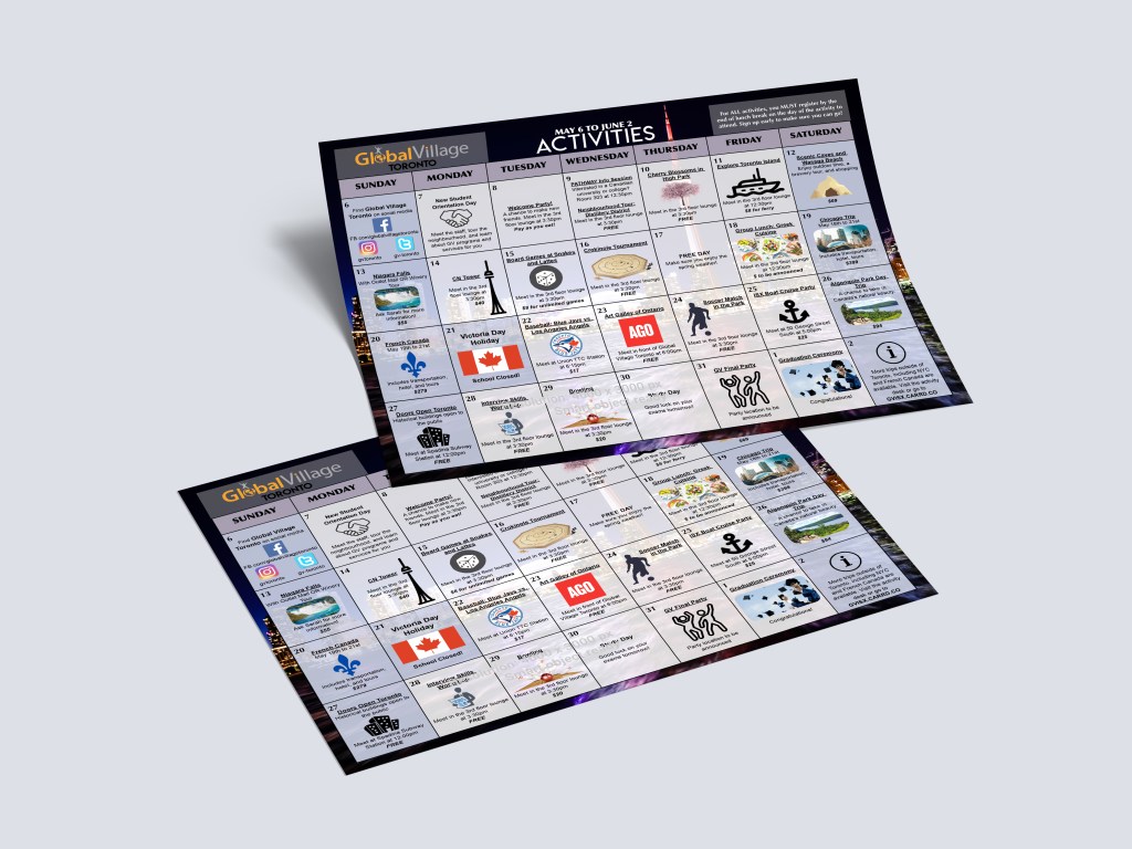 Centre of English Studies Toronto (formerly Global Village) Student Events Calendars